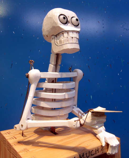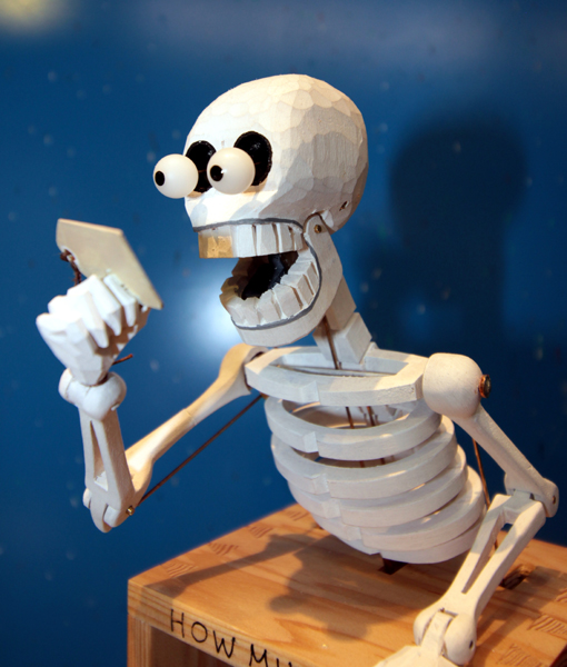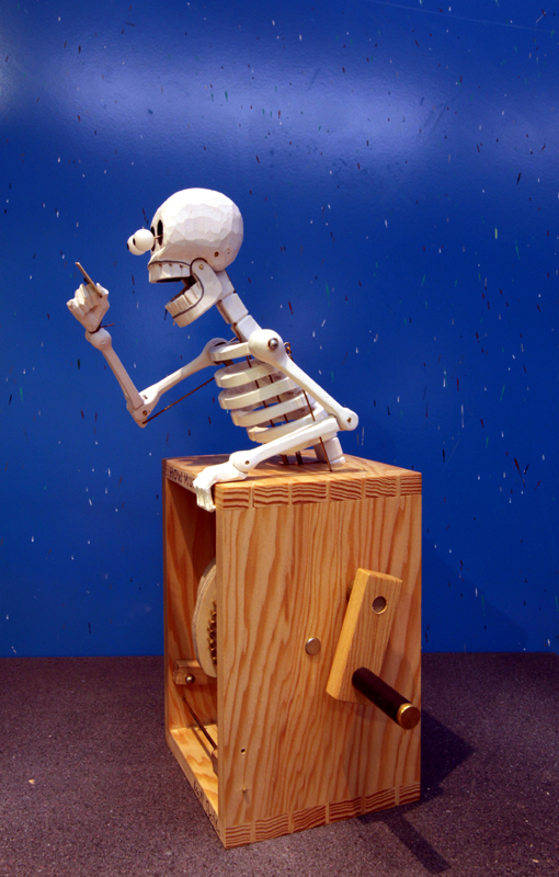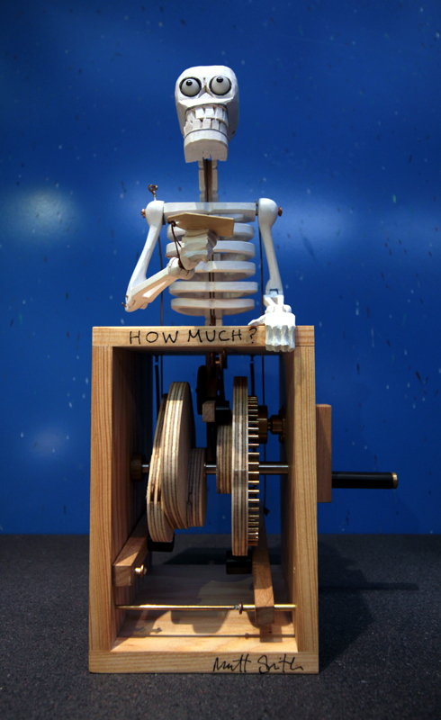 but OK I know what you're thinking , I've seen this joke before ...and yes you have . But I thought it was worth doing again . This version is somewhat funnier and the last version was done in 2004. Anyway this Automata stands 240 mm high and is 90 mm x 90mm . To see him in action there are various videos on youtube , if you click on the link below you will be able to view them. He is made from Maple and lime wood with a Douglas fir box and Maple and Birch wood for the mechanism . Other materials used are brass, silicone bronze and delrin. They will be available for delivery later in the year , probably in December . An edition of 30. If you would like to order one they cost SORRY SOLD OUT please let me know . My email is : matt@fourteenballstoy.co.uk THE VIDEOS |