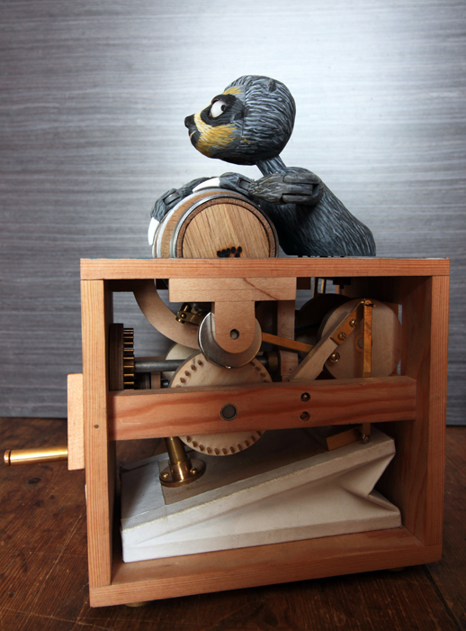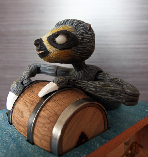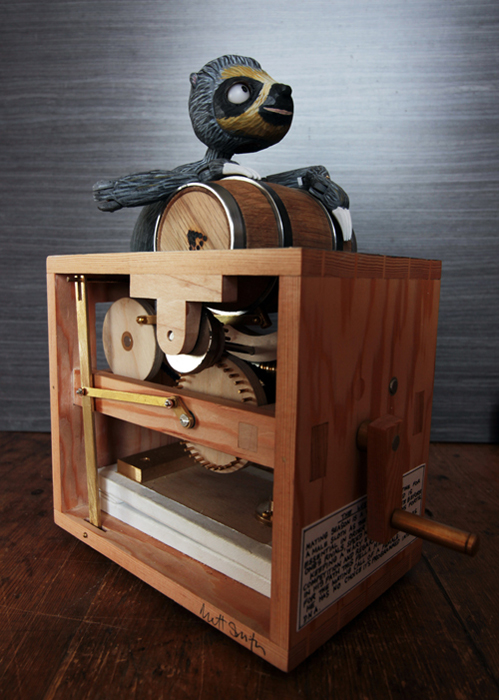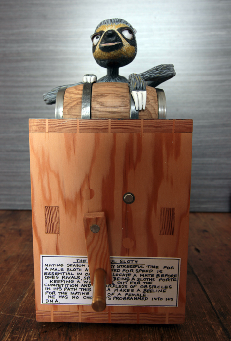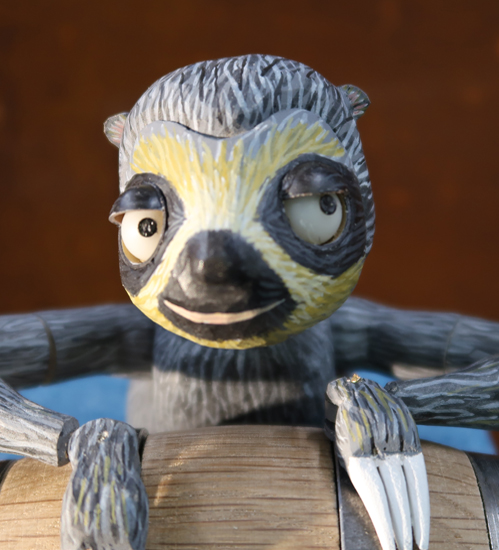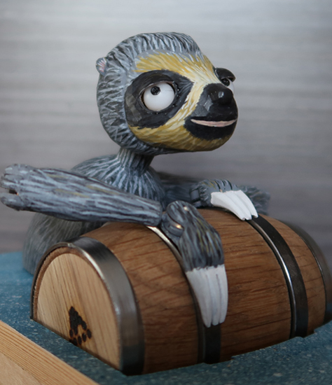 latest edition from Fourteen Balls Designed made by Matt Smith. The Sloth tries in vain to climb over the barrel in order to find his mate who is Calling to him, all the time he looks from
