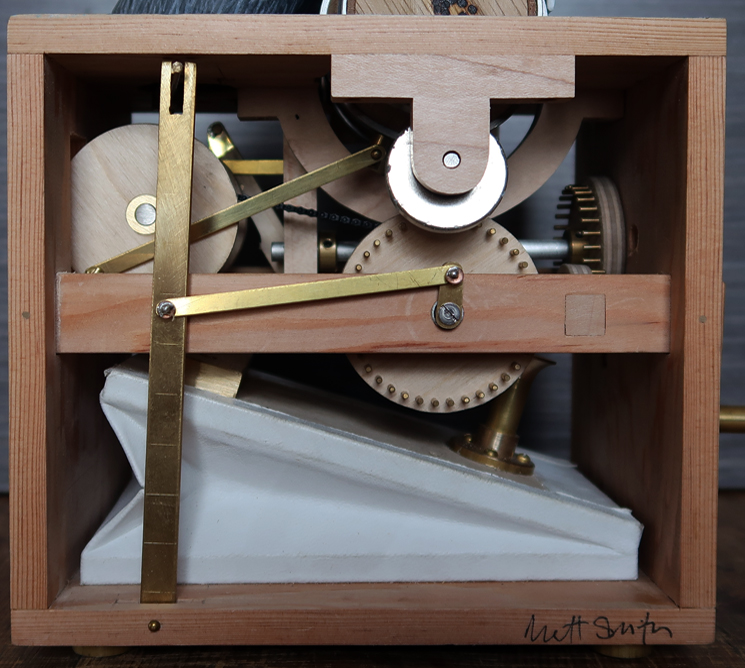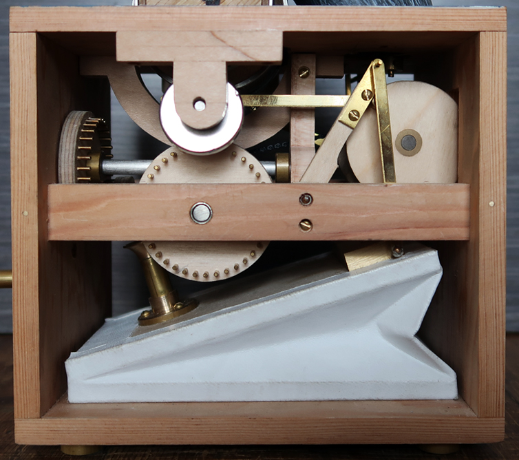 Douglas Fir, the mechanism is made from maple, birch, brass,