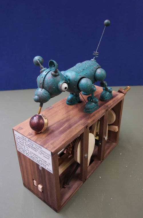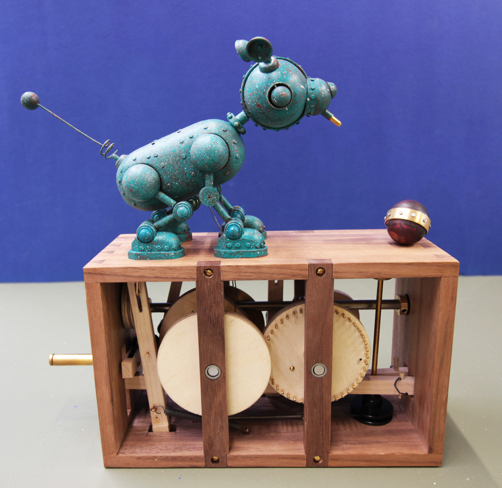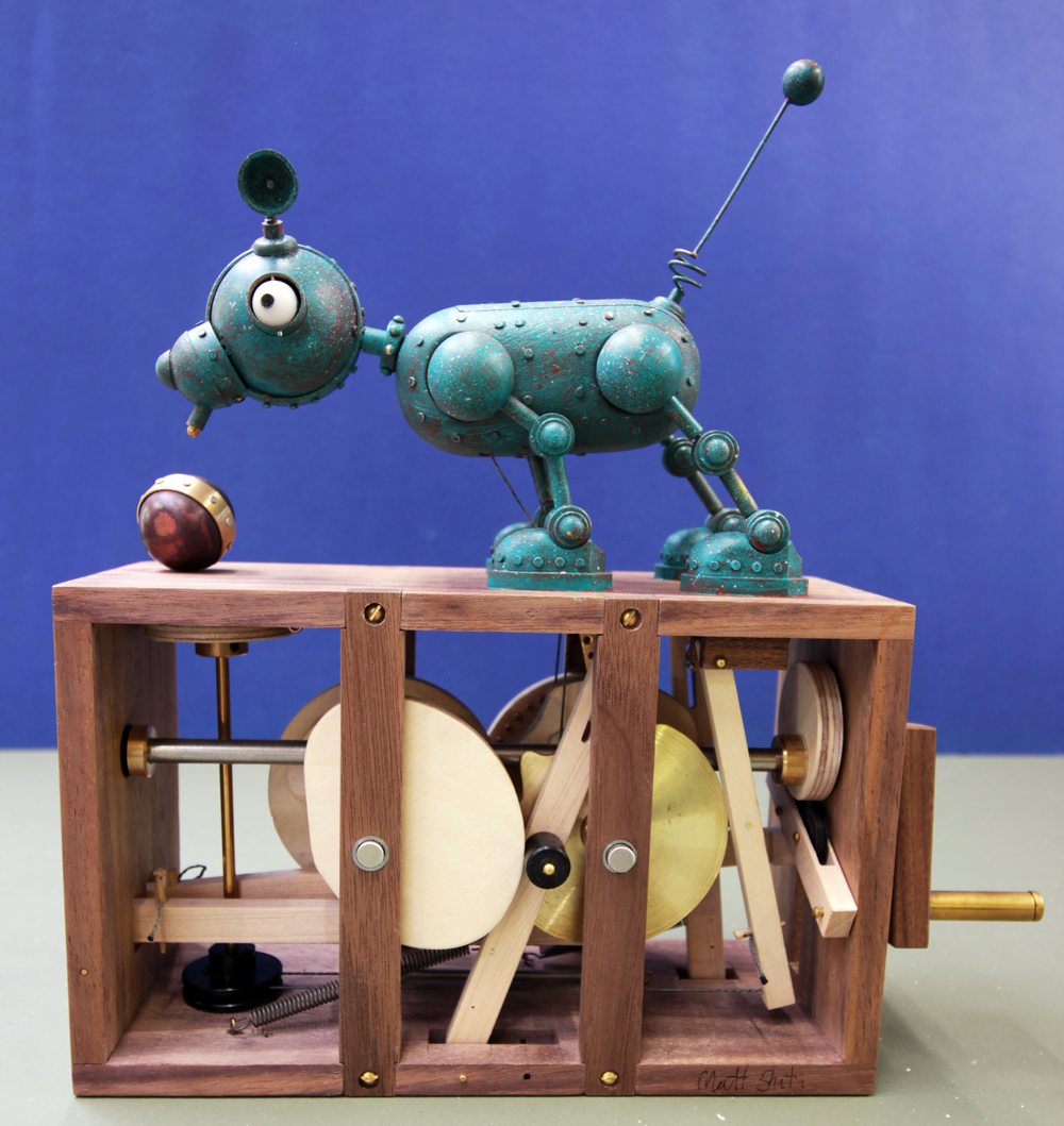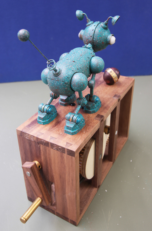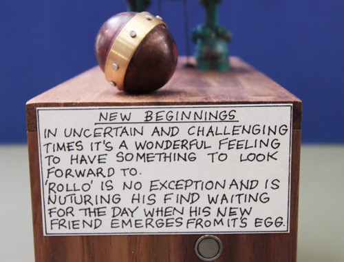 NEW BEGINNINGS Here we have a new edition from Fourteen balls toy co , designed , made and painted by Matt Smith. This is the prototype so may have flaws and holes in random places that won't be on the finished version. The automata is made of the usual range of materials which include , copper , brass and phosphor bronze. The box is made of Walnut and the mechanism of Maple , Birch and various metals . It is a complicated automata , the head contains a lot of mechanical parts which are all operated through the narrow neck , consequently it's not a cheap model . The overall dimesions are 240mm x 240 mm x 80 mm ( 9"x 9"x 3" ) The action is best seen on the slection of videos which are viewable here : https://www.youtube.com/watch?v=D3UghReAnLA https://www.youtube.com/watch?v=sleJqZFn7MQ https://www.youtube.com/watch?v=D10jm8mFG8A https://www.youtube.com/watch?v=ifvWuW3_6KE He is available to order for delivery next spring ( March / April 2021 ) The Price is £ 799.00 + delivery SORRY SOLD OUT |