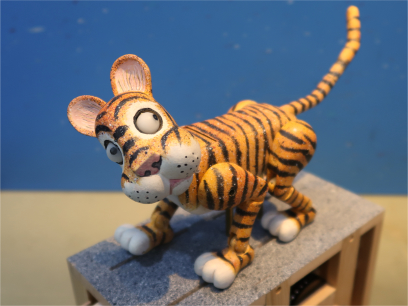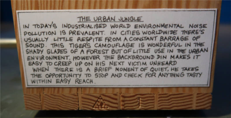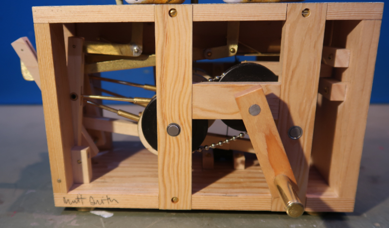 This is the second of the new editions, I made this in addition the the first offering as I thought the Tiger was nice enough on it's own ( and somewhat less expensive ). To see it in action there are links to several videos below . The automata is 240mm x 240mm x 100mm. It's made of the usual range of materials , those being : Douglas Fir , Maple , Birch plywood Brass , Stainless steel , copper , bronze wire and Acetal . The entire Automata is designed and made by me ( Matt Smith ) with the painting done by Sarah Smith ( my wife ) and me, everything is made in my workshop in Cornwall. It's all designed in my head and made using manual machines and by hand ! ( No CNC). The Price is £1,450.00 ( GBP ) + shipping at cost . Delivery should be in late Summer. Once again there will be a limited number produced so please order quickly if you would like one of them . NB: The pictures and videos are of the Prototype , the finished versions may be slightly different as they are all indivudally painted. Also the mechanism may be modified if necessary but this is unlikely. |